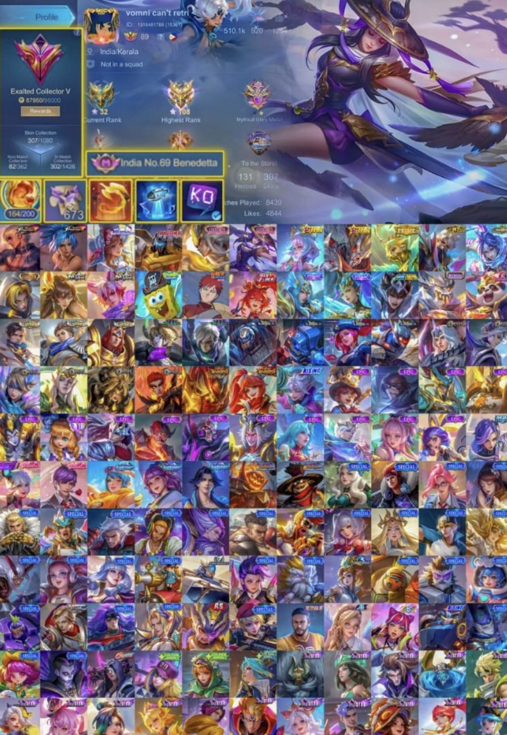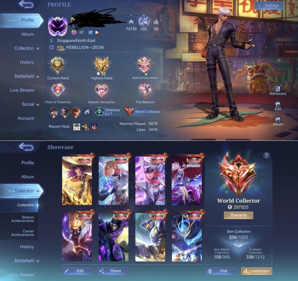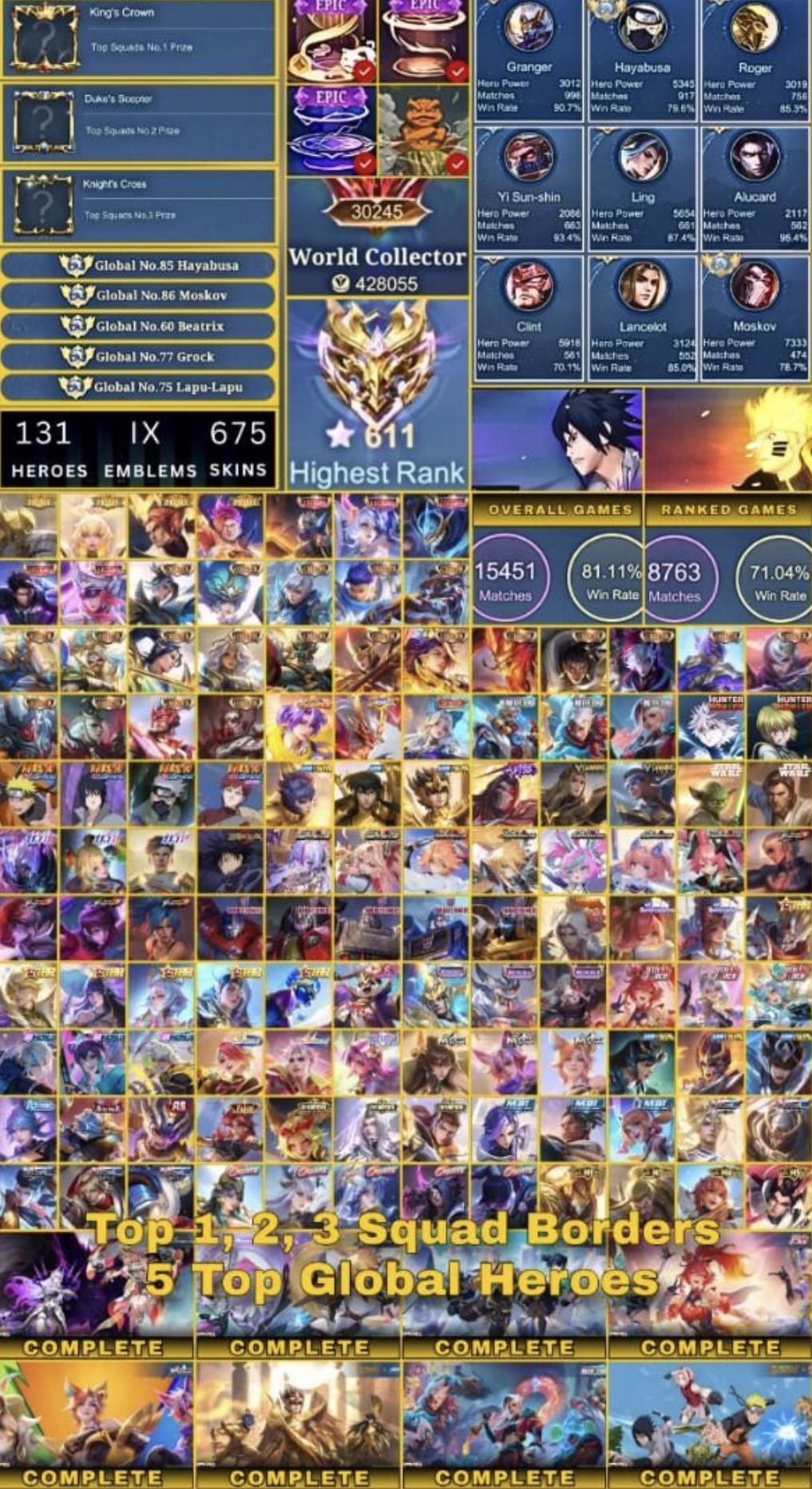 MLBB Mobile Legends Account World Collector Top 52