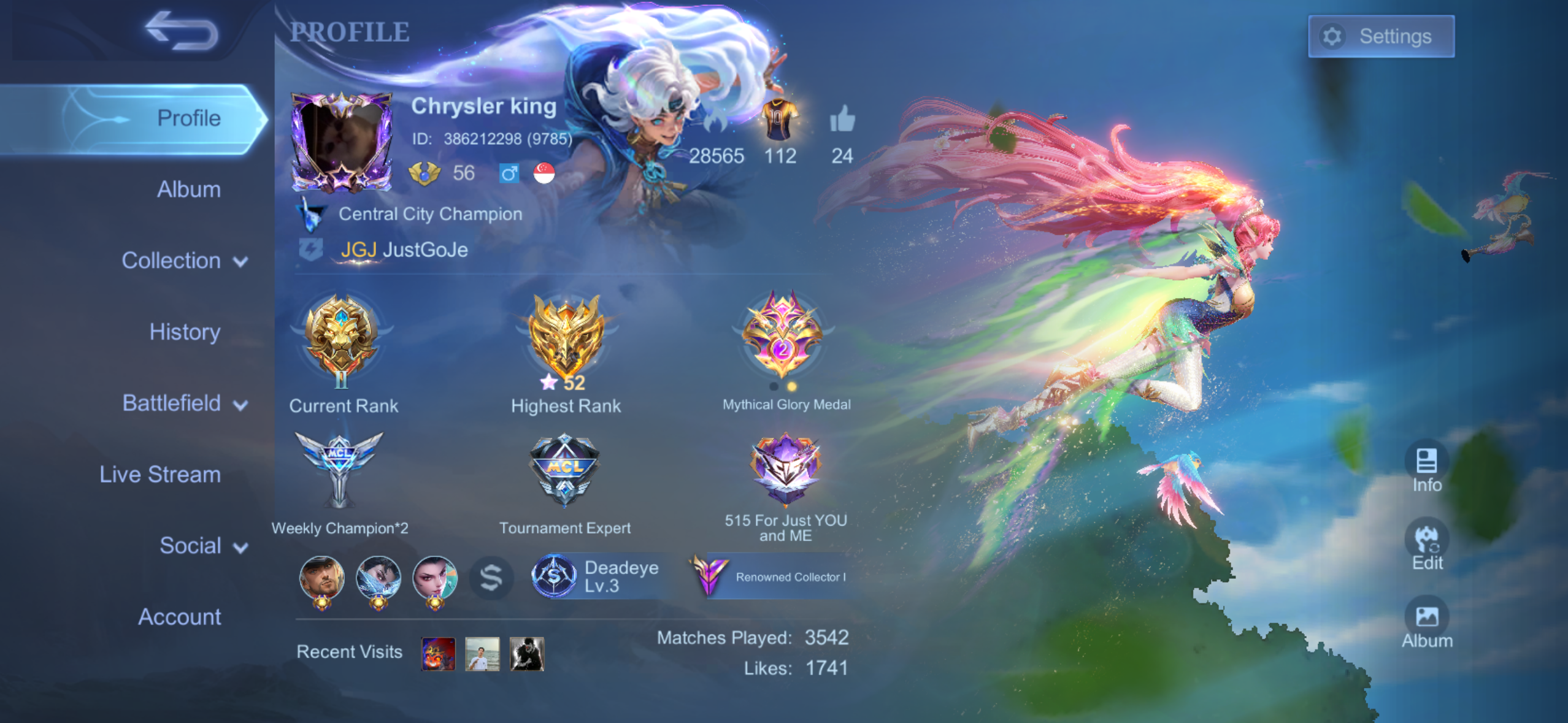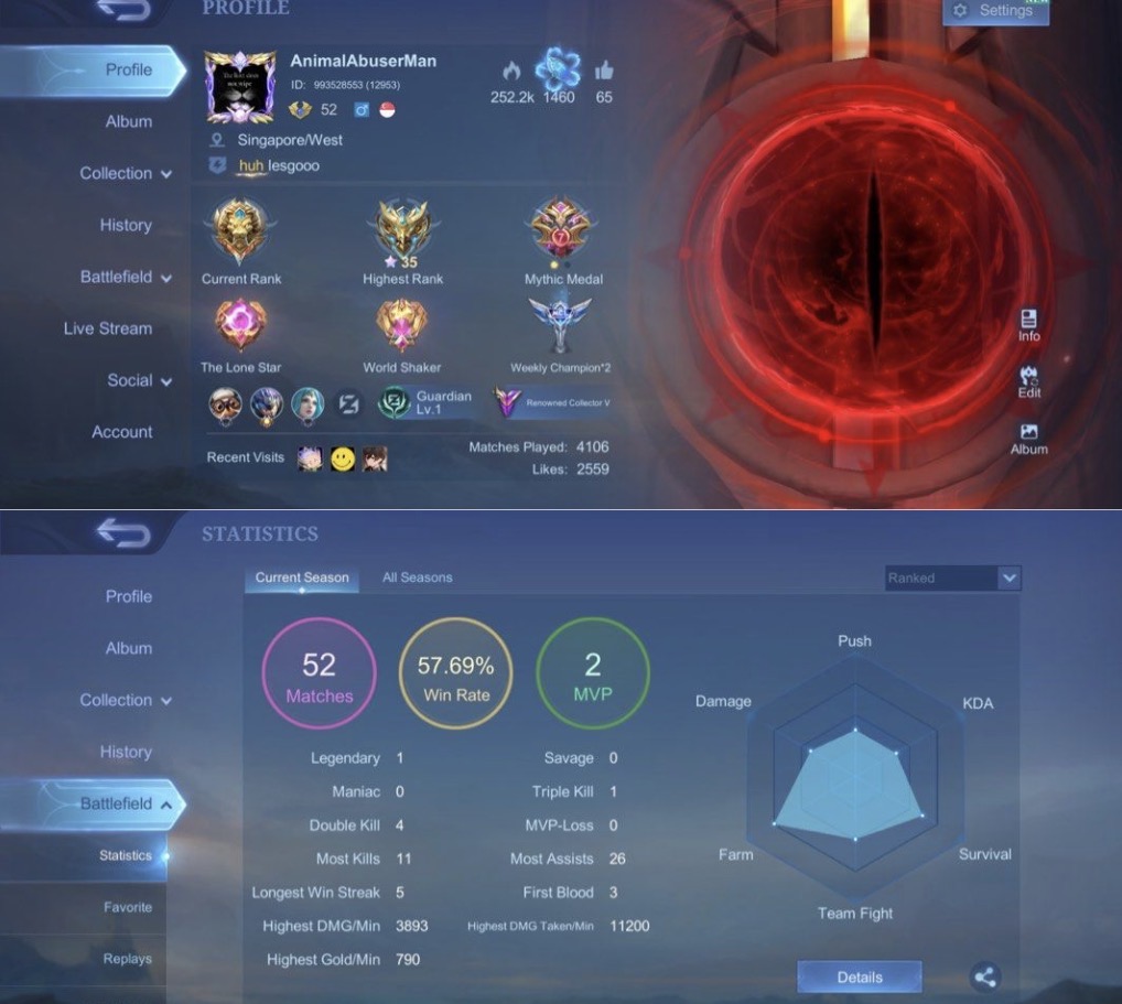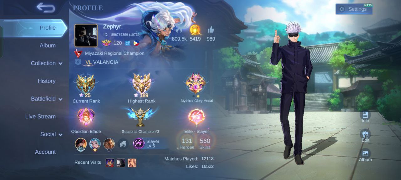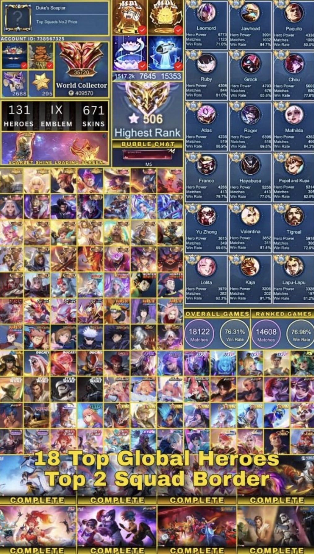 MLBB Mobile Legends Account World Collector Top 52