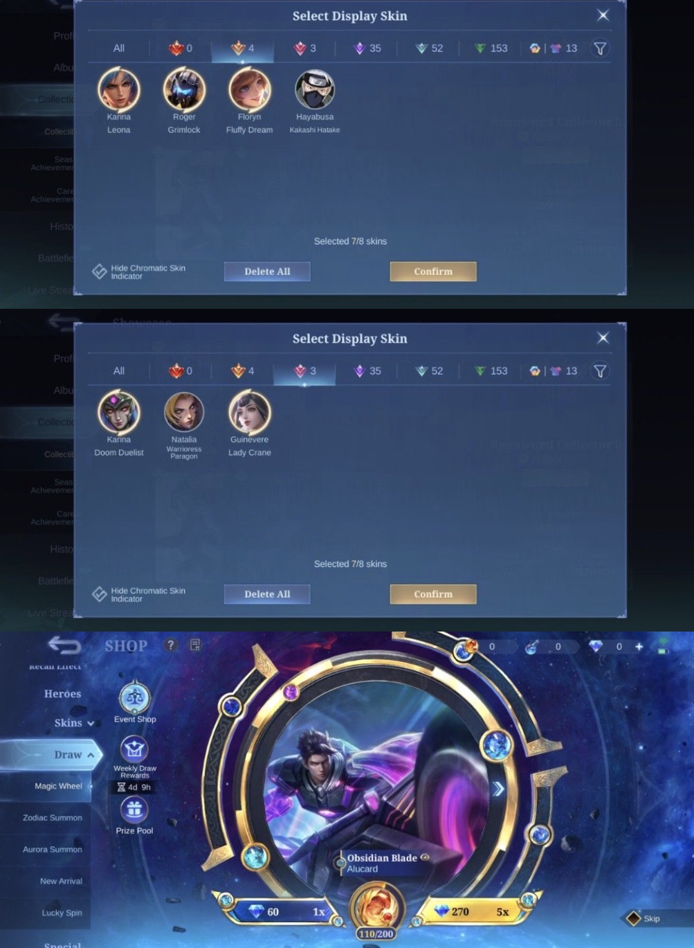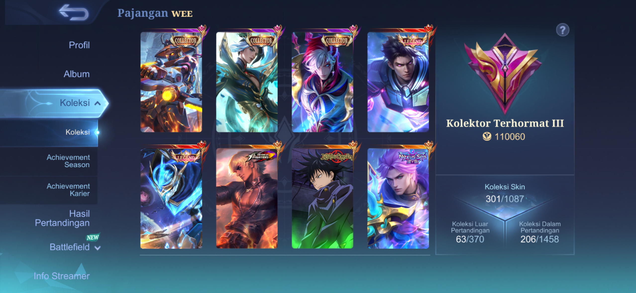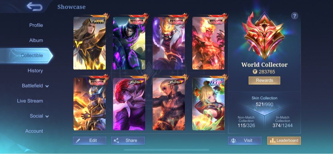 WTS 521 SKINS MLBB World COLLECTOR ACCOUNT