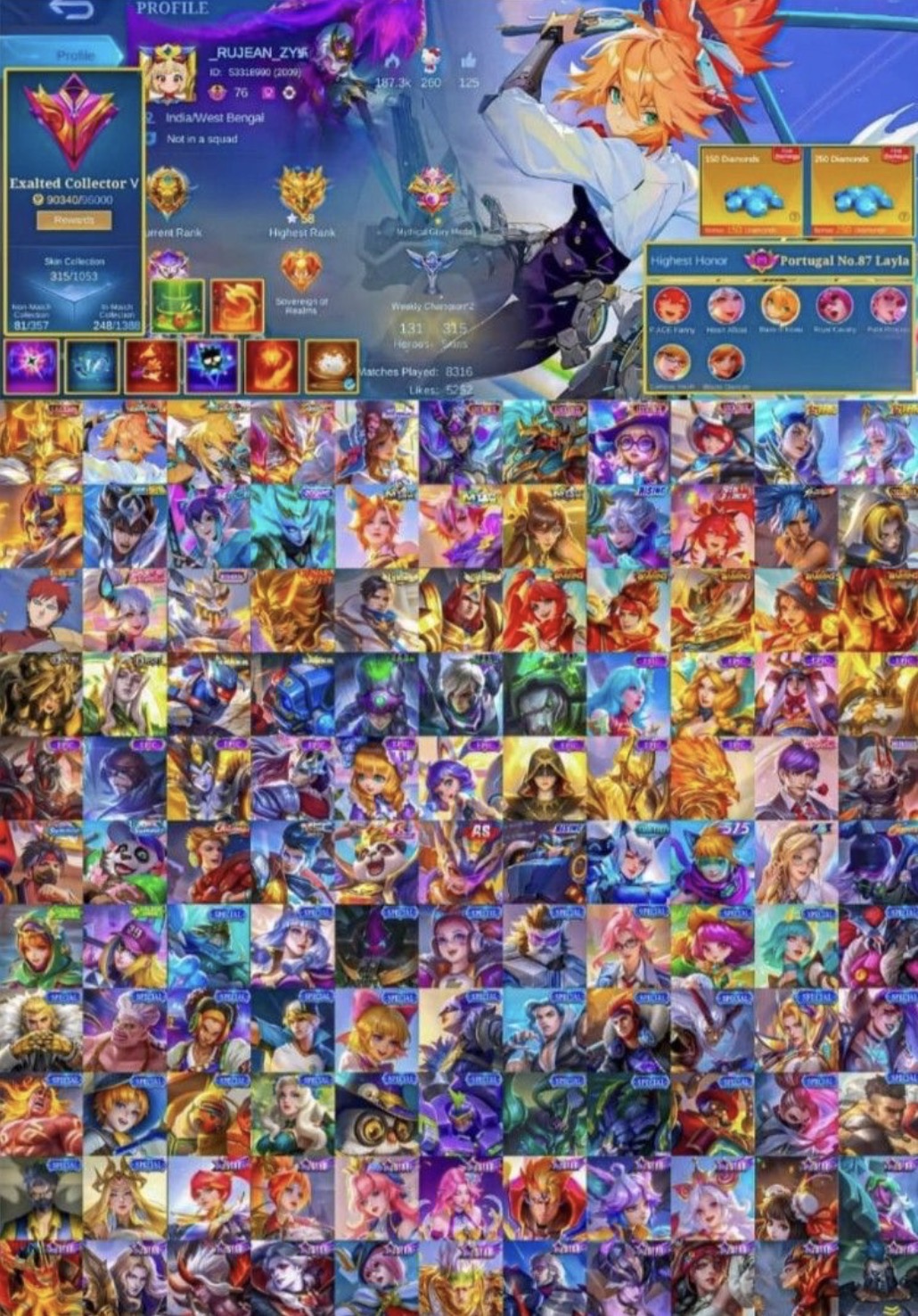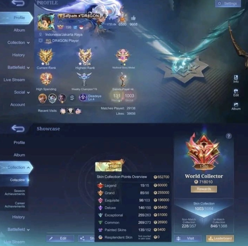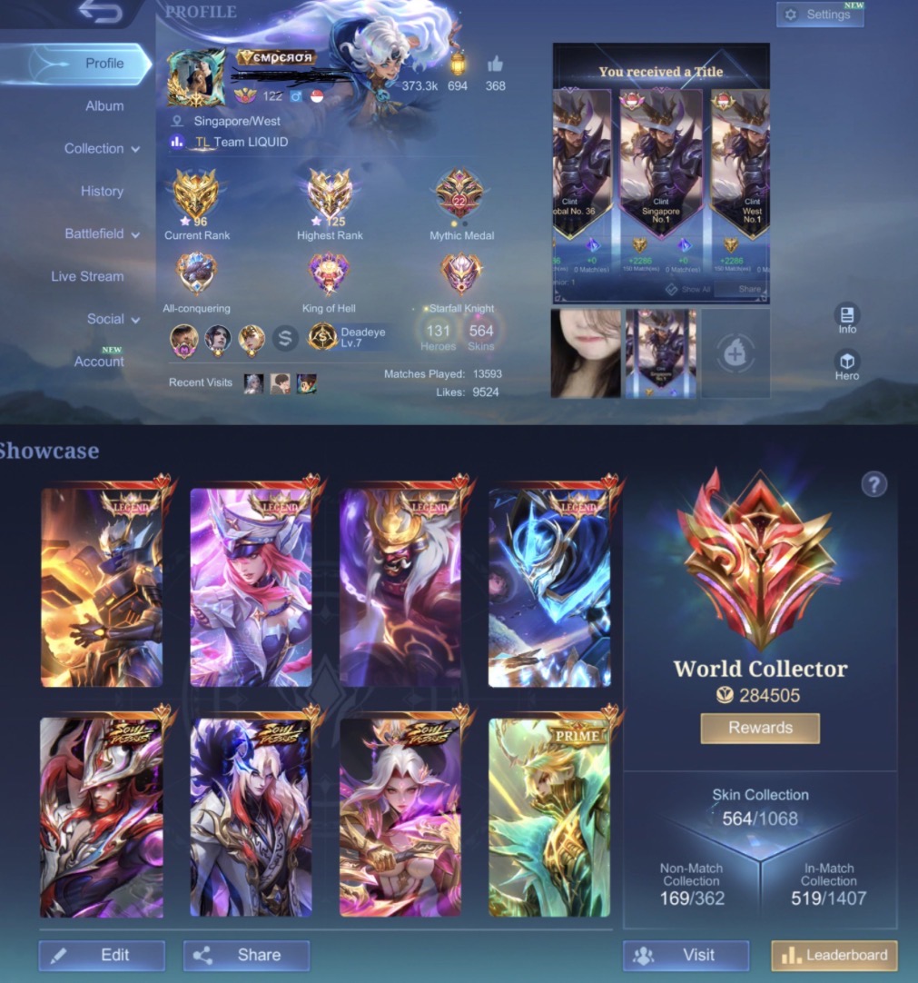 Mlbb account world collection almost 390k points