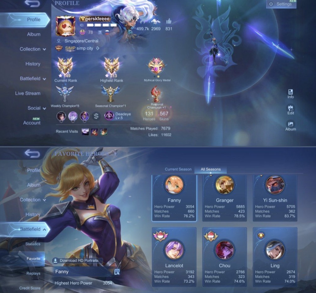 Mobile legends account mlbb ml Fanny Miya legend