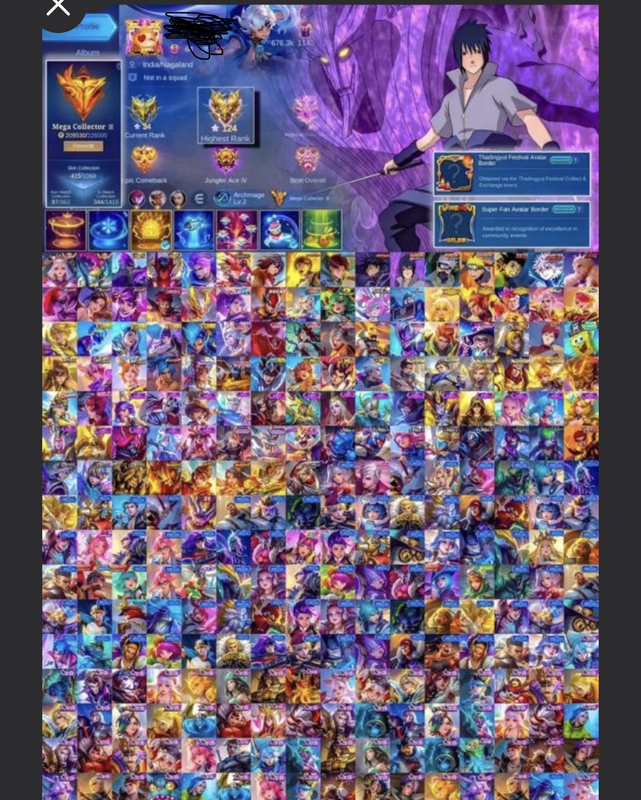 stacked mobile legends account mega collector 2 high wr || mlbb ml acc world collector high wr rank