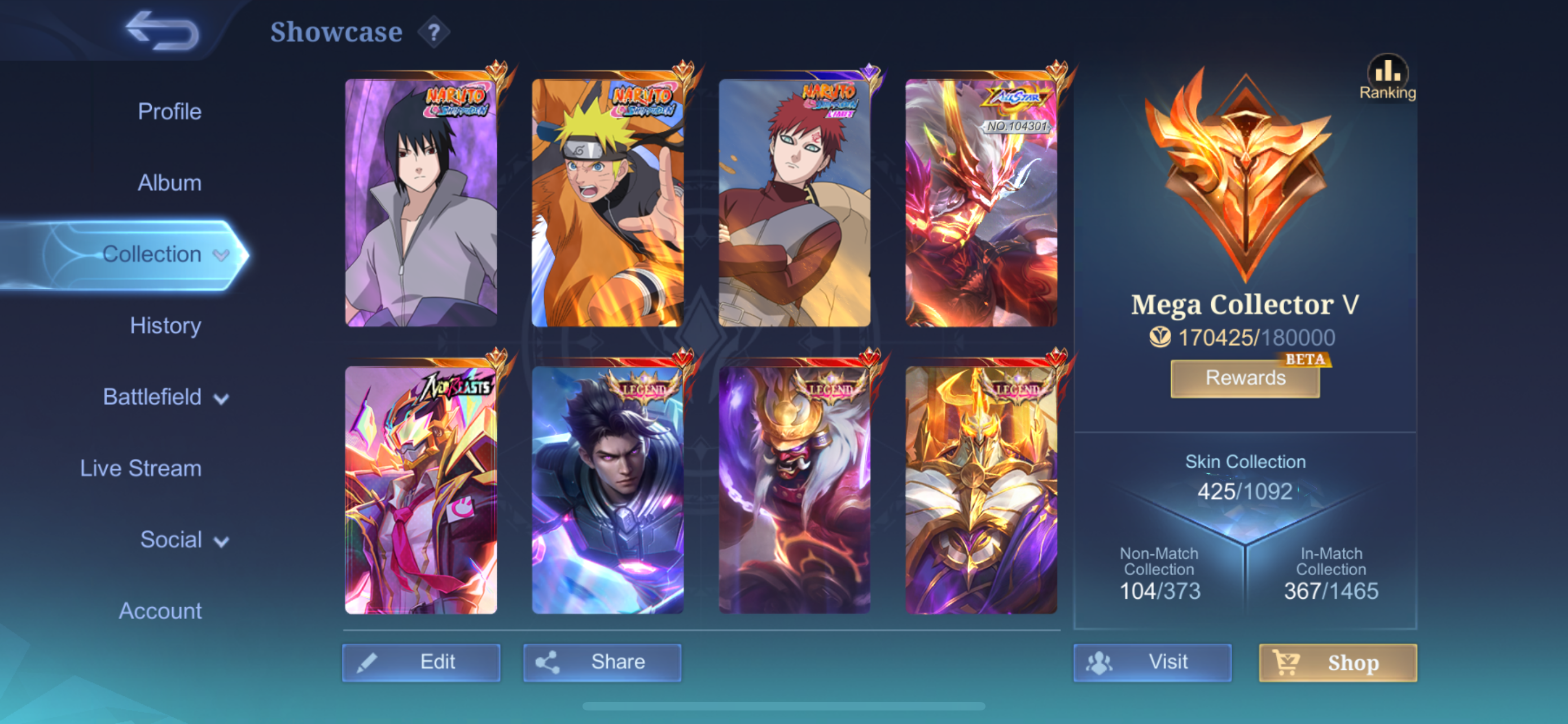 Mobile Legend account with many collabs skins max all